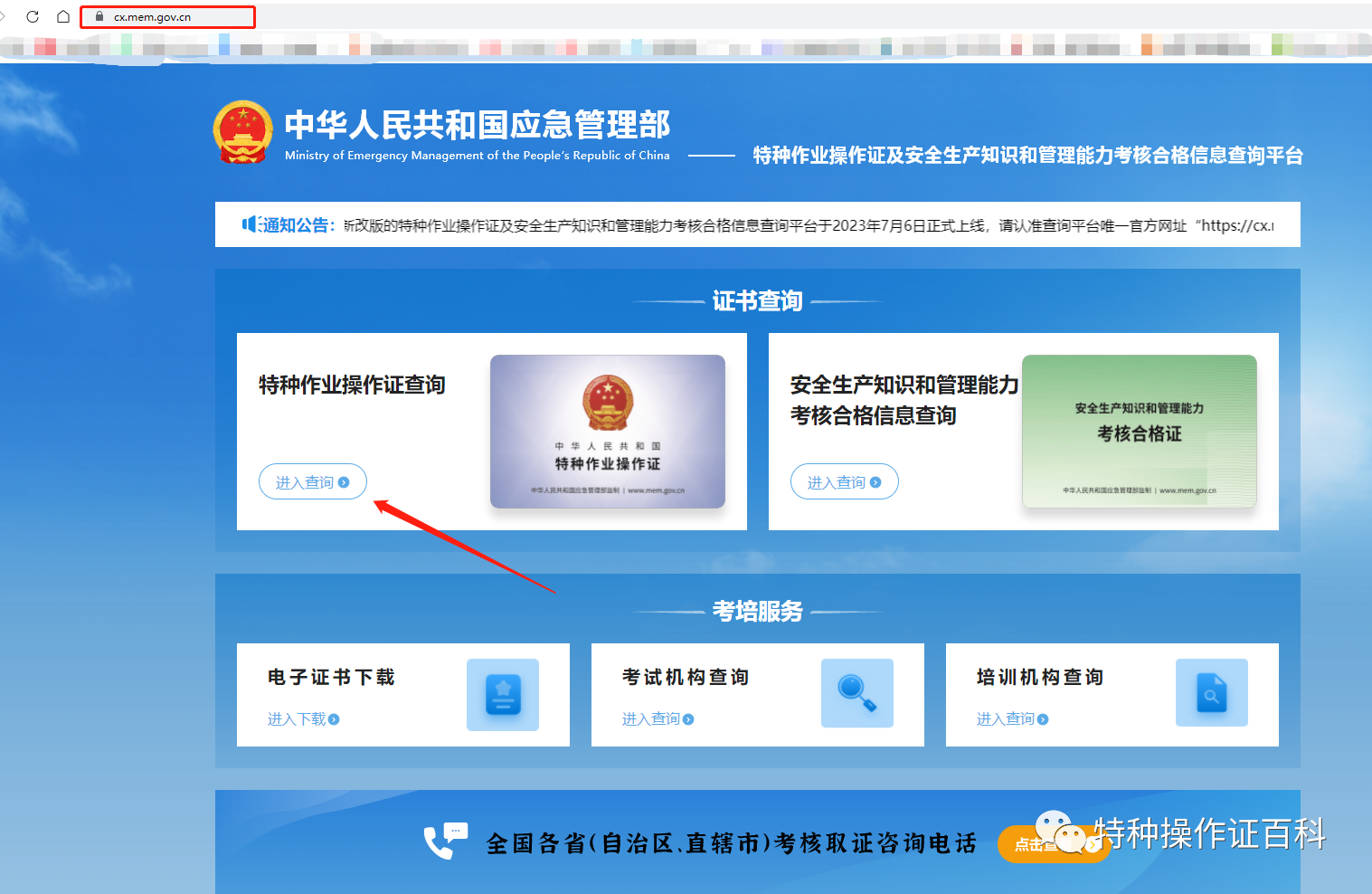 安監(jiān)局特種作業(yè)證全國聯(lián)網(wǎng) 全國統(tǒng)一官網(wǎng):https://www.mem.gov.cn/